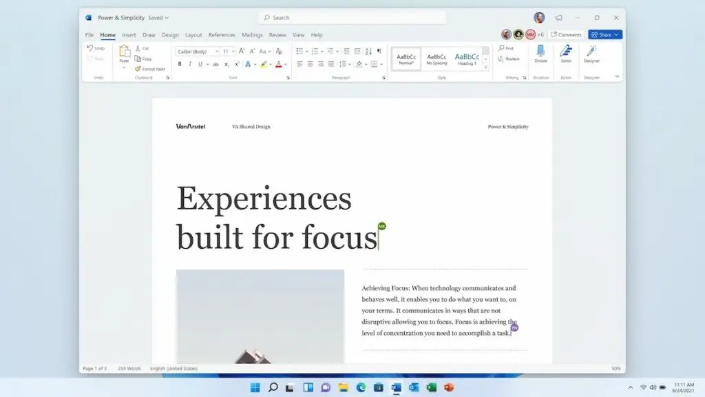 Office 2021 شامل قابلیت های همکاری Microsoft 365 ، ویرایش مشترک ، پشتیبانی OneDrive و ادغام با Microsoft Thames است. این نسخه دارای طراحی جدیدی است که ظاهر برگه ها را تغییر می دهد ، گوشه های پنجره ها را گرد می کند و طیف رنگی ویندوز 11 را وارد این نرم افزار می کند.