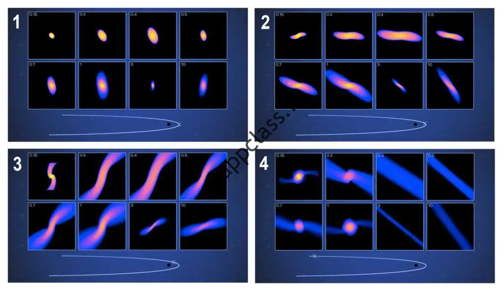 این تیم از هشت ستاره با ساختار داخلی واقعی آنها تقلید کردند که 0.15، 0.3، 0.4، 0.5، 0.7، 1، 3 و 10 برابر جرم خورشید بودند. هر یک از این ستارگان، در نزدیکترین حالت خود، 38.5 میلیون کیلومتر از سیاهچاله، در حدود یک چهارم فاصله از زمین و خورشید را طی کردند.